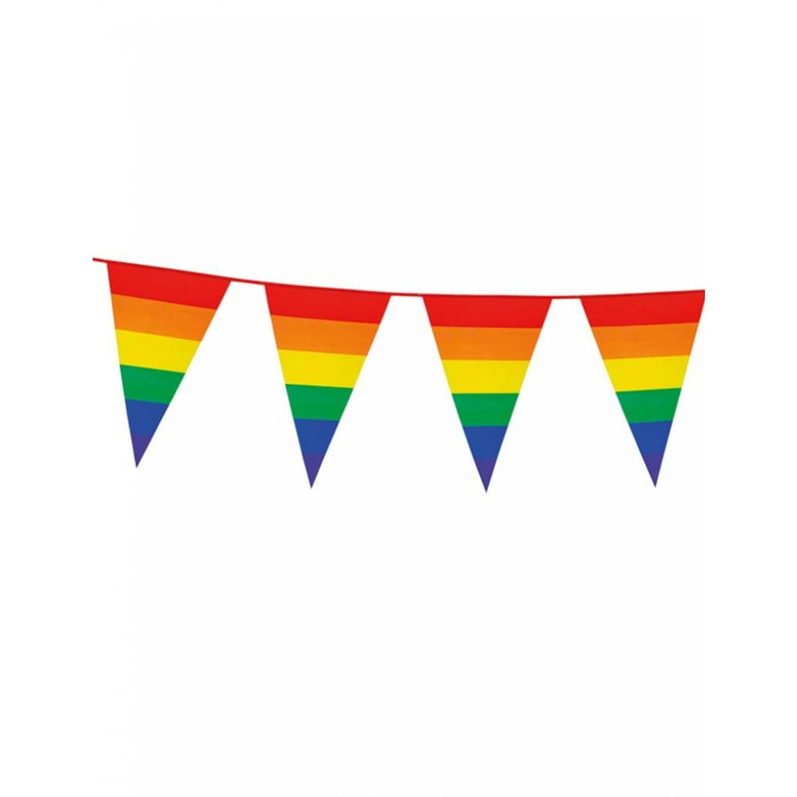 Cette guirlande de fanions triangulaires Arc-en-ciel, 8m aura toute sa place dans votre maison pour la célébration d'un anniversaire ou de tout autre événement spécial.