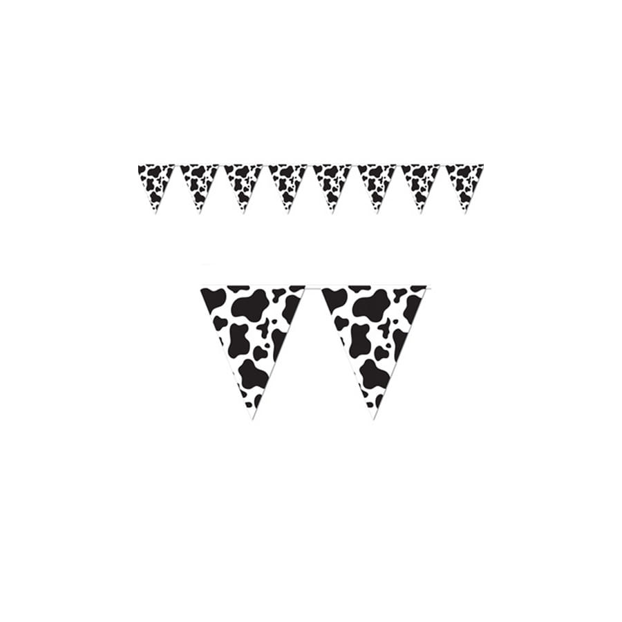 La guirlande faite de fanions imprimés aux motifs de vache noir et blanc de 370 cm est en papier.