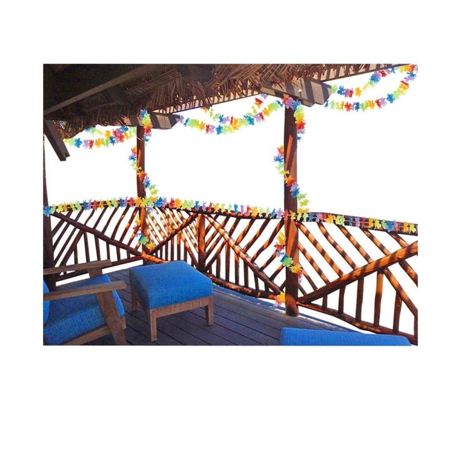 Elaborez votre petit coin de paradis en vous inspirant des fameuses guirlandes hawaïennes. A accrocher en hauteur ou à faire longer sur tout le long d'un meuble, cette guirlande de fleurs hawaïennes multicolore ne peut que vous séduire ! Elle fait 3 mètres de longs et elle est formée par de magnifiques fleurs artificielles et colorées. Ses extrémités sont dotées de crochets pour une pose plus facile.