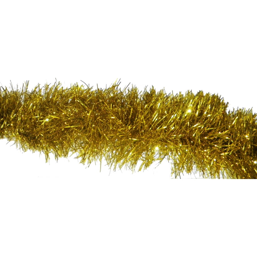 Guirlande chenille dorée. La taille de cet accessoire est de 2 mètres 70 de longueur sur une largeur de 150 millimètres. Pour un maximum d'effet, accrochez cette guirlande sur votre plafond à l'occasion des fêtes de fin d'année.