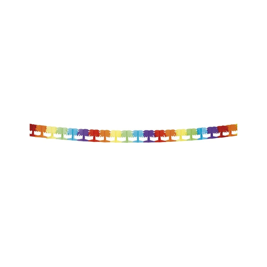 La guirlande de palmiers multicolores en papier de 4 m est une décoration à utiliser pour une fête sur le thème de la plage et des cocotiers.