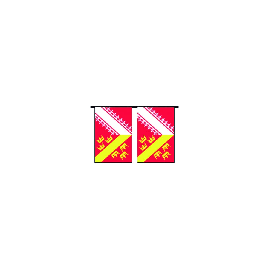 Cet accessoire est parfait pour décorer de grandes surfaces à l'occasion d'un carnaval. Guirlande en plastique agrémentée de 15 pavillons rectangulaires représentant le drapeau de l'Alsace. Les pavillons sont jaunes, rouges et blancs et mesurent 20 centimètres de largeur sur 30 centimètres de hauteur. La guirlande elle-même fait 4 mètres de long.