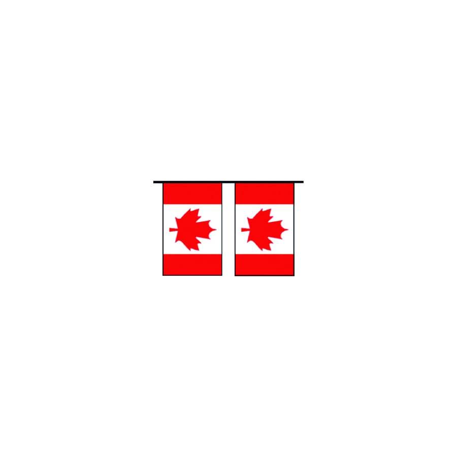 Montrez votre support envers le Canada grâce à cette guirlande. Guirlande en plastique agrémentée de 20 pavillons rectangulaires représentant le drapeau du Canada. Les pavillons sont blancs et rouges et mesurent 20 centimètres de largeur sur 30 centimètres de hauteur. La guirlande mesure 10 mètres de long.