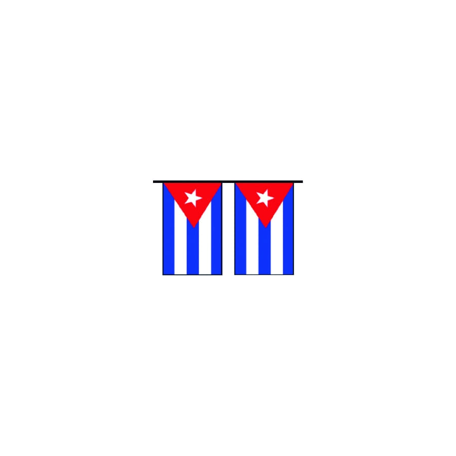 Décorez vos grandes surfaces aux couleurs de Cuba grâce à cette guirlande! Guirlande en plastique, agrémentée de 20 pavillons rectangulaires blancs, rouges et bleus, représentant le drapeau cubain. Chacun de ces pavillons mesure 20 centimètres de largeur sur 30 centimètres de hauteur. La guirlande elle-même mesure 10 mètres de long.