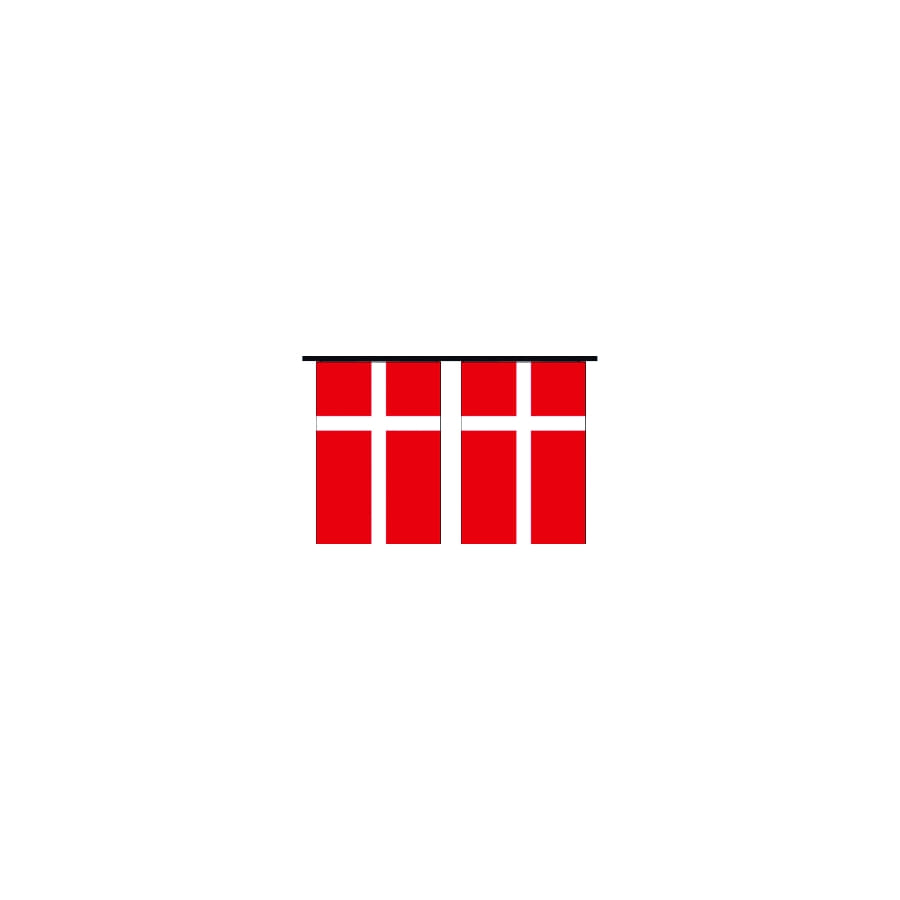 Vous pouvez utiliser cette guirlande comme décoration de fête nationale. Guirlande en plastique agrémentée de 20 pavillons rectangulaires représentant le drapeau du Danemark. Les pavillons sont blancs et rouges et mesurent 20 centimètres de largeur sur 30 centimètres de hauteur. La guirlande mesure 10 mètres de long.
