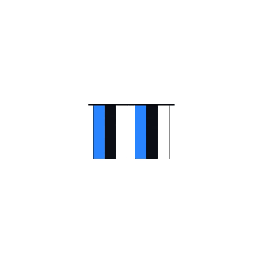 Montrez votre support envers l'Estonie grâce à cette guirlande. Guirlande en plastique agrémentée de 20 pavillons rectangulaires représentant le drapeau de l'Estonie. Les pavillons sont noirs, bleus et blancs et mesurent 20 centimètres de largeur sur 30 centimètres de hauteur. La guirlande mesure 10 mètres de long.