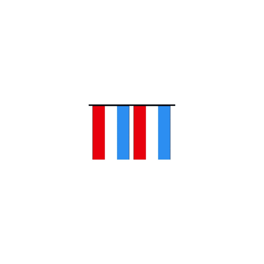 Cet accessoire de décoration est très utile pour une fête nationale. Guirlande en plastique agrémentée de 20 pavillons rectangulaires représentant le drapeau du Luxembourg. Les pavillons sont blancs, bleus et rouges et mesurent chacun 20 centimètres de largeur sur 30 centimètres de hauteur. La guirlande mesure 10 mètres de long.