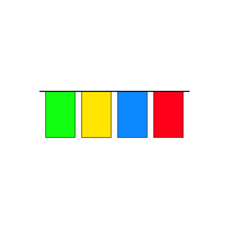 Pour une fête haut en couleurs, cette guirlande en plastique ornée de 16 pavillons rectangles multicolores. La taille de la guirlande est de 10 mètres de long et les pavillons mesurent chacun 20 sur 30 centimètres. Cet décoration simple égayera efficacement vos fêtes d'anniversaire.