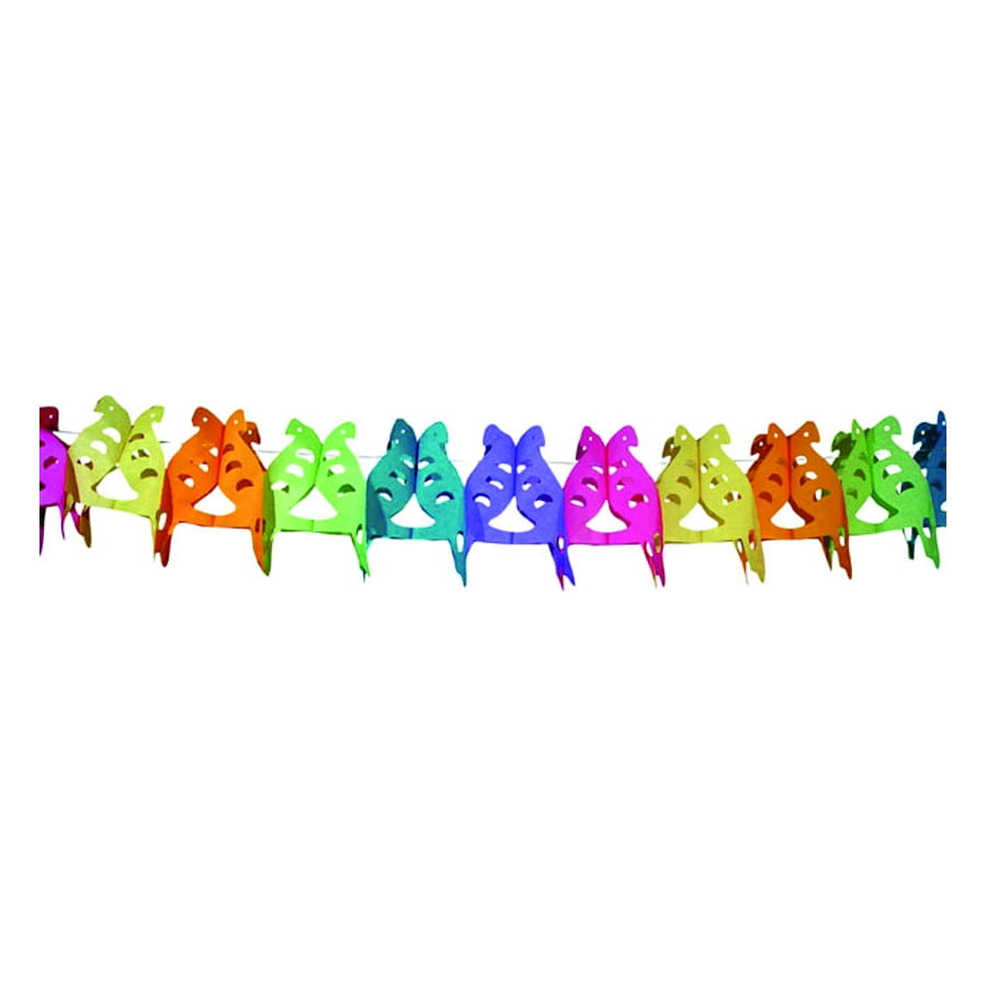 Guirlande en papier en forme de perroquets multicolores. Cet accessoire de décoration mesure 3 mètres de longueur. C'est un accessoire parfait pour une décoration de fête d'anniversaire.
