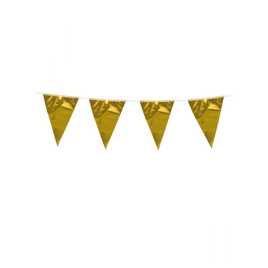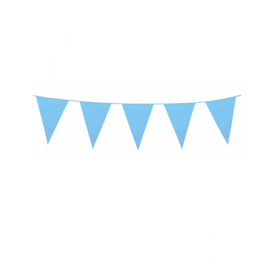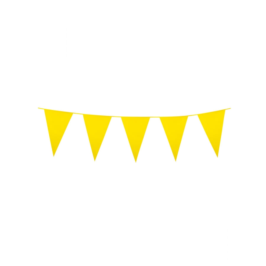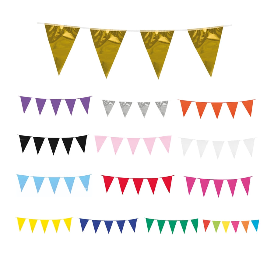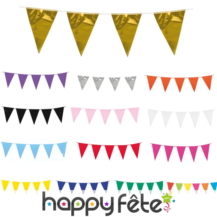 Nous vous proposons d'utiliser cette Guirlande de petits fanions en plastique de 3 m.