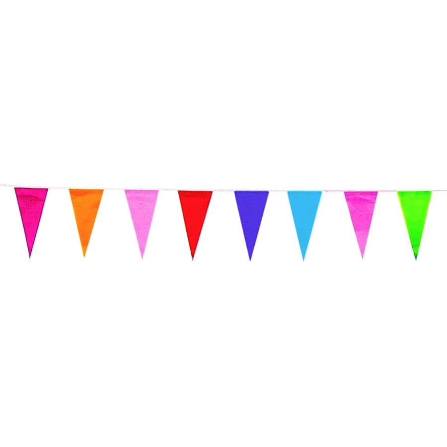 Pour la décoration d'un anniversaire, ou le carnaval, vous aurez besoin de cet accessoire. Cette belle guirlande avec 48 pavillons qui est multicolore. Ces triangles font 12 cm de largeur sur une hauteur de 23cm. Cette guirlande fait 10 mètres.