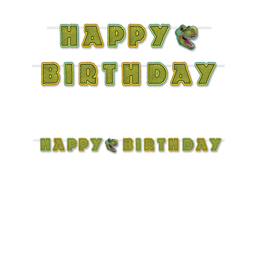 Lors de l'anniversaire de votre enfant fan de dinosaures, décorez la salle de fête avec cette guirlande Dino Happy Birthday de 3m.