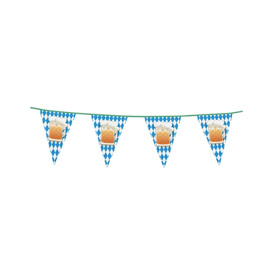Décorez votre mini-bar d'une guirlande à thème fête de la bière. Voici une fabuleuse guirlande de 6 m de long. Elle est composée de plusieurs petits pavillons faisant 30 x 20 cm de dimension. Chaque pavillon est joliment orné d'une chope remplie de bière bien mousseuse, sur un fond bleu et blanc. Ces guirlandes se marient tout aussi bien avec les fêtes de style cabaret des années 20.