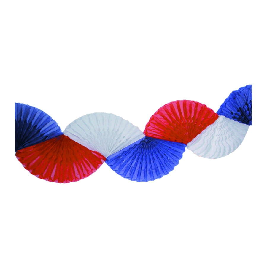 Supportez l'équipe de France avec cette guirlande. De couleur bleu, blanc et rouge vous pourrez aussi vous en servir pour la fête nationale. La guirlande fait 3m, elle est en papier éventail, sur chaque éventail il y a une couleur différente. Vous pourrez aussi vous en servir pour un thème autour du monde.