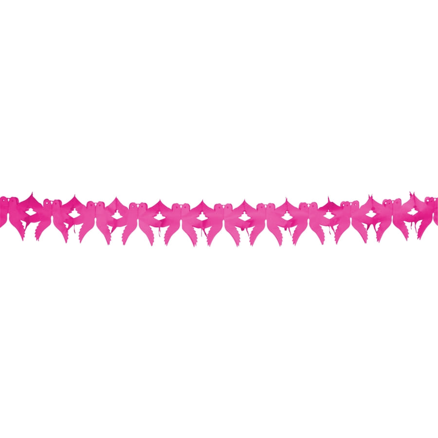 Guirlande en forme de jolies petites colombes de couleur fuchsia. Cet accessoire mesure 4 mètres de longueur. La couleur de cette guirlande ajoutera une touche romantique à votre décoration.
