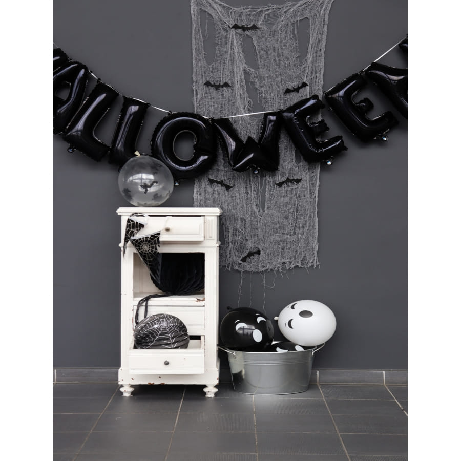 Installez minutieusement votre imparable déco du 31 octobre, avec la guirlande Halloween de ballons noirs.
