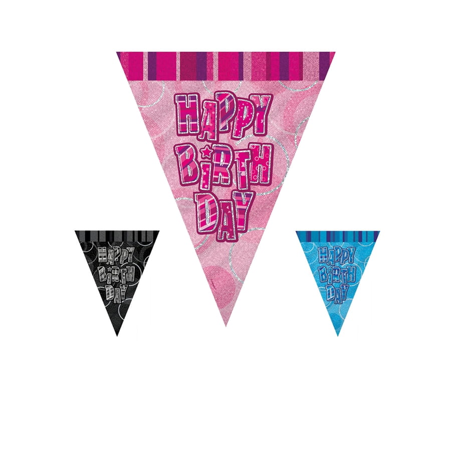 Elle est constituée de fanions imprimés de l'expression "Happy Birthday ".