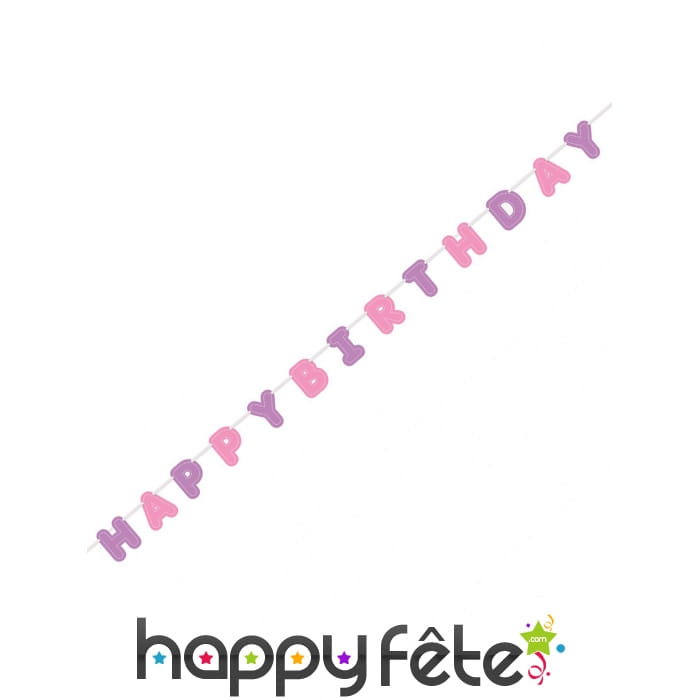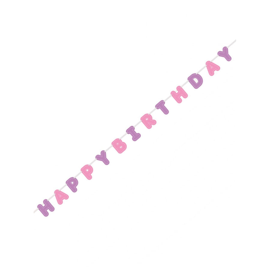 Célébrez le prochain anniversaire de votre fille en complétant votre décoration avec cette Guirlande Happy Birthday rose et violet de 274cm.