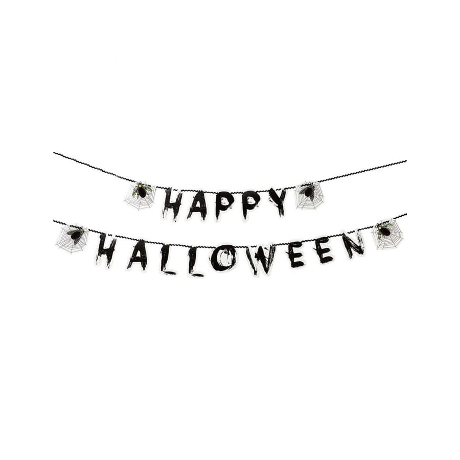 Mettez une touche de frisson dans la déco d'un Halloween délirant, grâce à la guirlande Happy Halloween de 3m, toile insectes.
