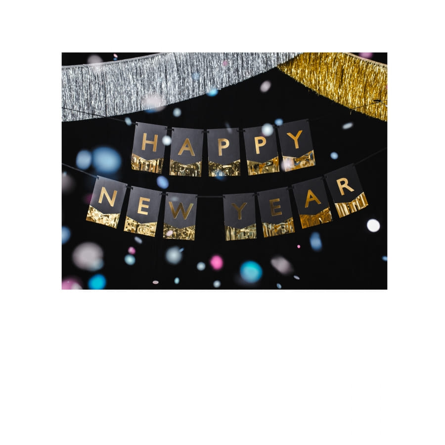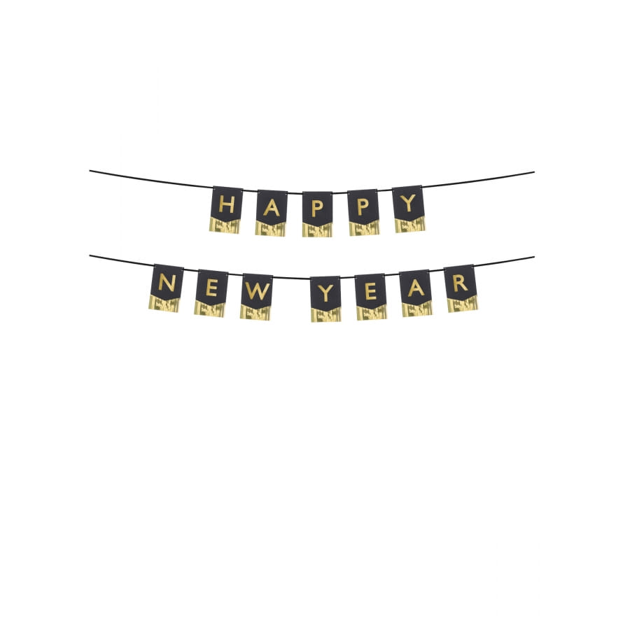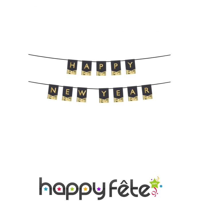 Et à cette occasion, nous vous présentons ici, sur cette page, la guirlande happy New Year noire et dorée.