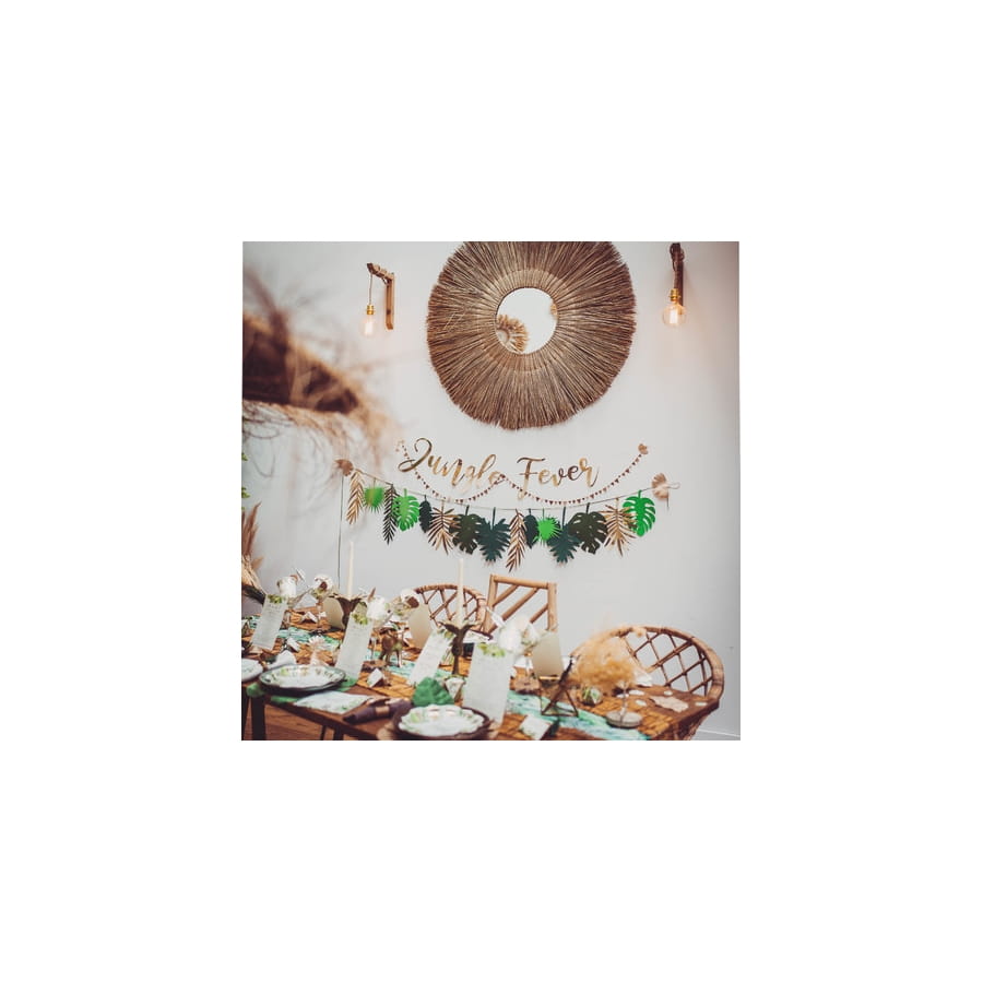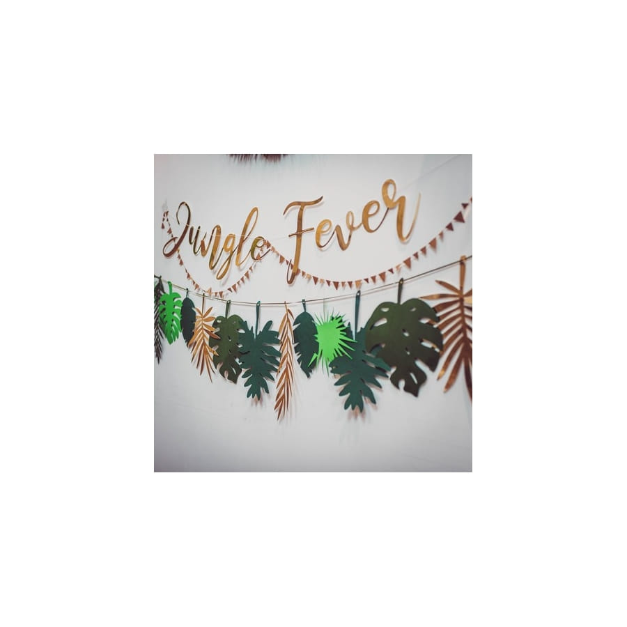 Cette guirlande est fabriquée en carton et propose une couleur dorée parfaite pour un thème tropical.