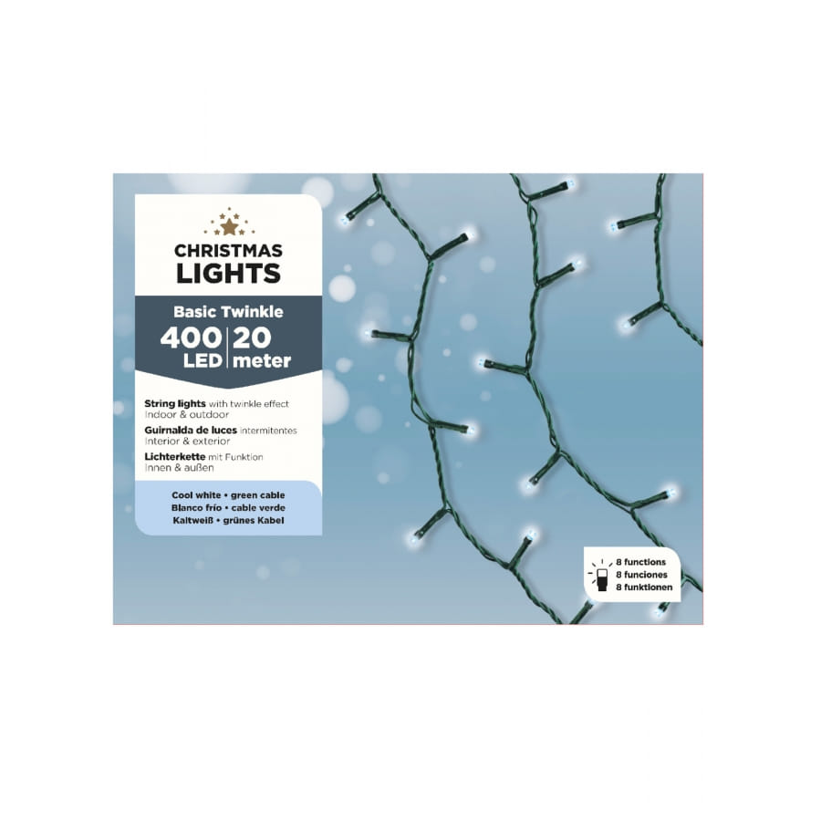 Cette guirlande se compose de 400 Led de couleur blanche, réparties sur 20 mètres de câble.