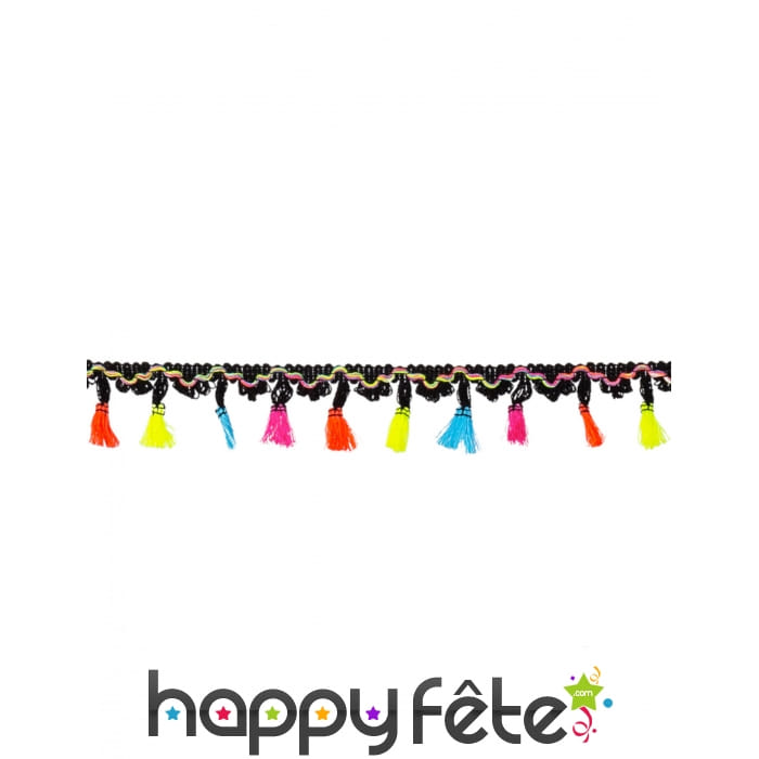 Il s'agit d'un ruban noir agrémenté d'une alternance de pompons de couleurs différentes.