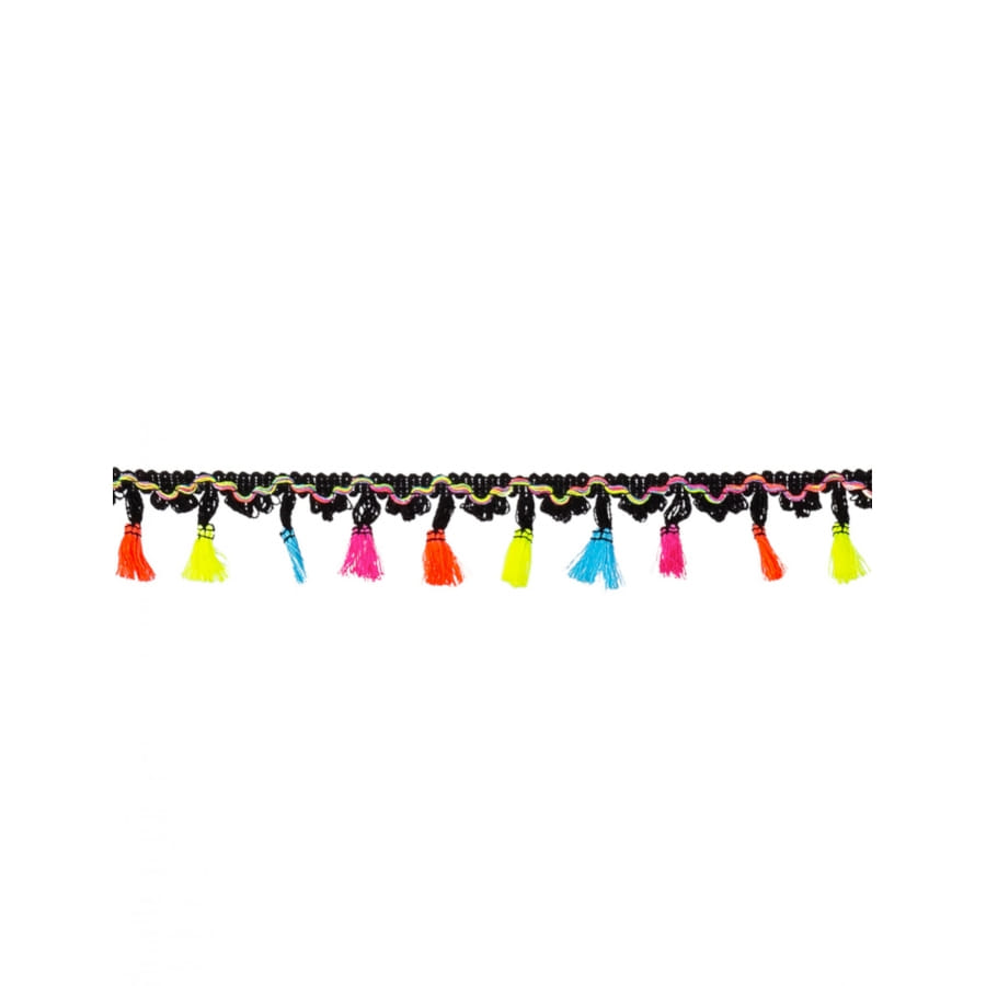 La guirlande noire de pompons colorés de 2 m est en polyester.
