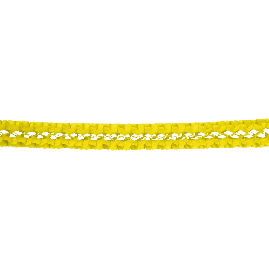 Guirlande en forme de boa à plumes de couleur jaune. Cet accessoire mesure 16 centimètres de largeur et 4 mètres de long. Utilisez ce boa pour créér une décoration vive à l'occasion d'un mariage, d'un anniversaire, d'un carnaval ou de la Pâques.