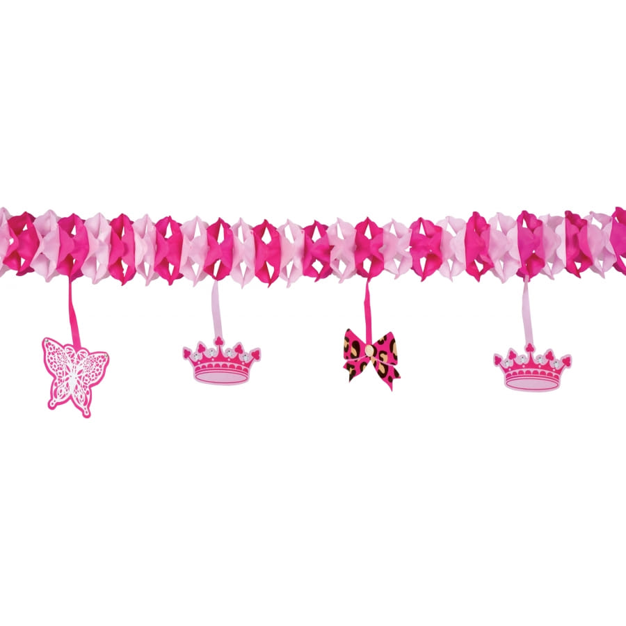 Les guirlandes ne sont pas seulement prévues pour les fêtes de fin d'année. Imaginez un magnifique décor de conte de fée pour l'anniversaire de votre princesse. Munissez-vous de la guirlande princess en papier, 4 m de long afin de réaliser cet exploit. L'article est équipé de petits éléments cartonnés suspendus tout le long de la guirlande. Vous découvrirez alors des motifs noeuds, couronnes ou papillons. Quant à la couleur, vous aurez droit à une alternance de rose clair et de rose foncé.