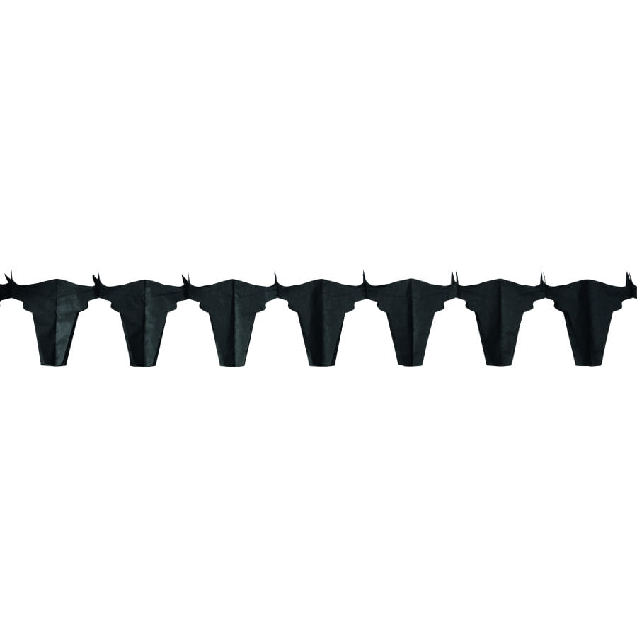 Cette guirlande en papier ignifugé est des têtes de taureau, elle fait 4m50 de long. De couleur noire, cette guirlande vous servira pour plusieurs occasions comme un enterrement de vie de garçon ou de jeune fille, ou encore durant le carnaval.