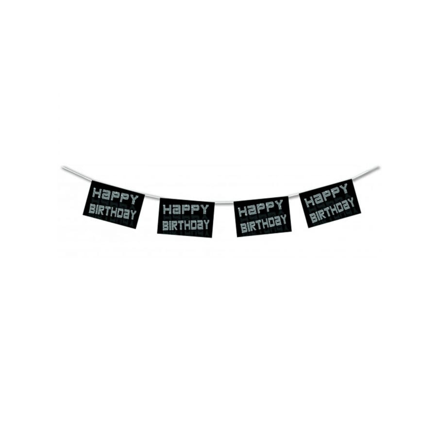 Ces pavillons de couleur noire mesurent environ 28 x 20 cm et sont floqués du message Happy Birthday en blanc sur les deux faces.