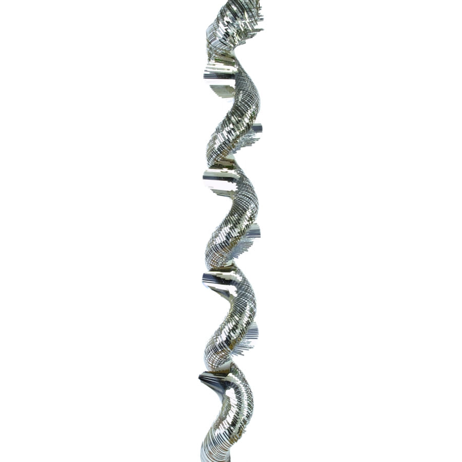 Guirlande virvatelle argentée. La taille de cet accessoire est de 12 centimètres de largeur sur 4 mètres 50 de longueur. Tous les yeux seront rivés sur ce magnifique accessoire de décoration!