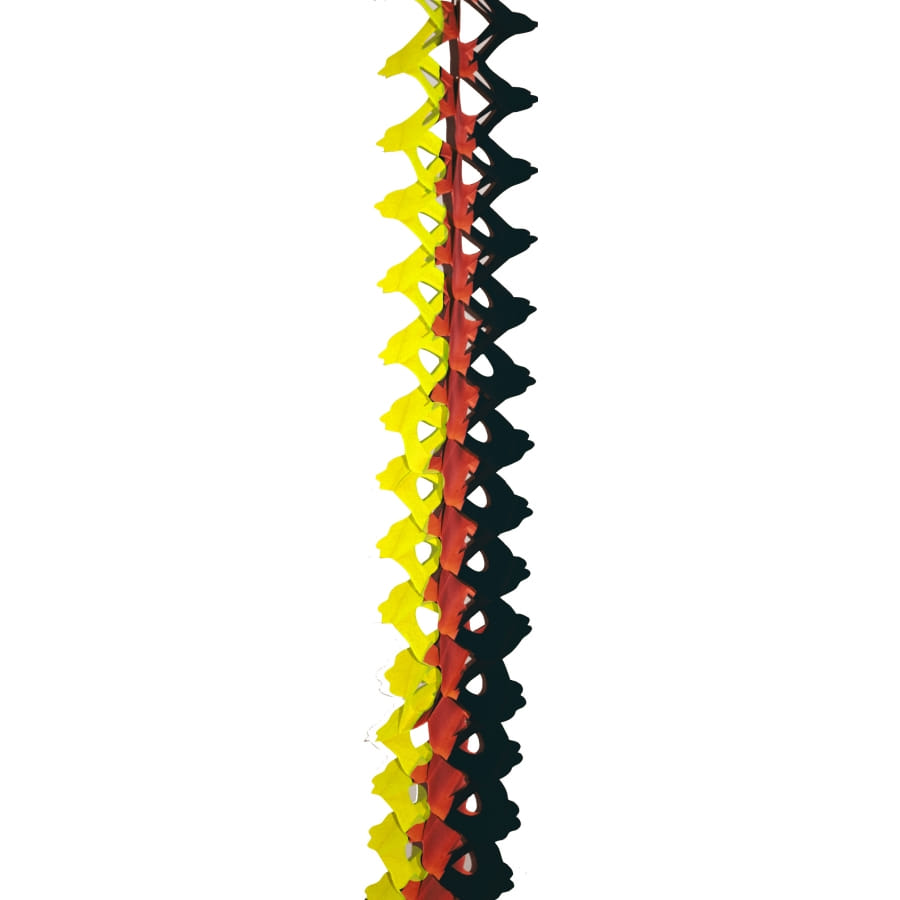Guirlande zinnia ignifugée jaune, noire et rouge. Cette guirlande aux couleurs de l'Allemagne ou de la Belgique mesure 4.5 mètres de longueur. Elle est parfaite pour célébrer une fête nationale ou un évènement sportif.