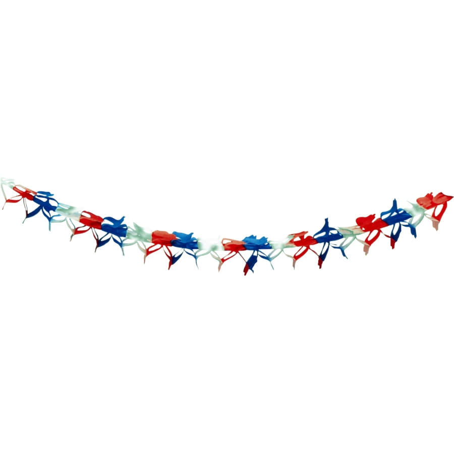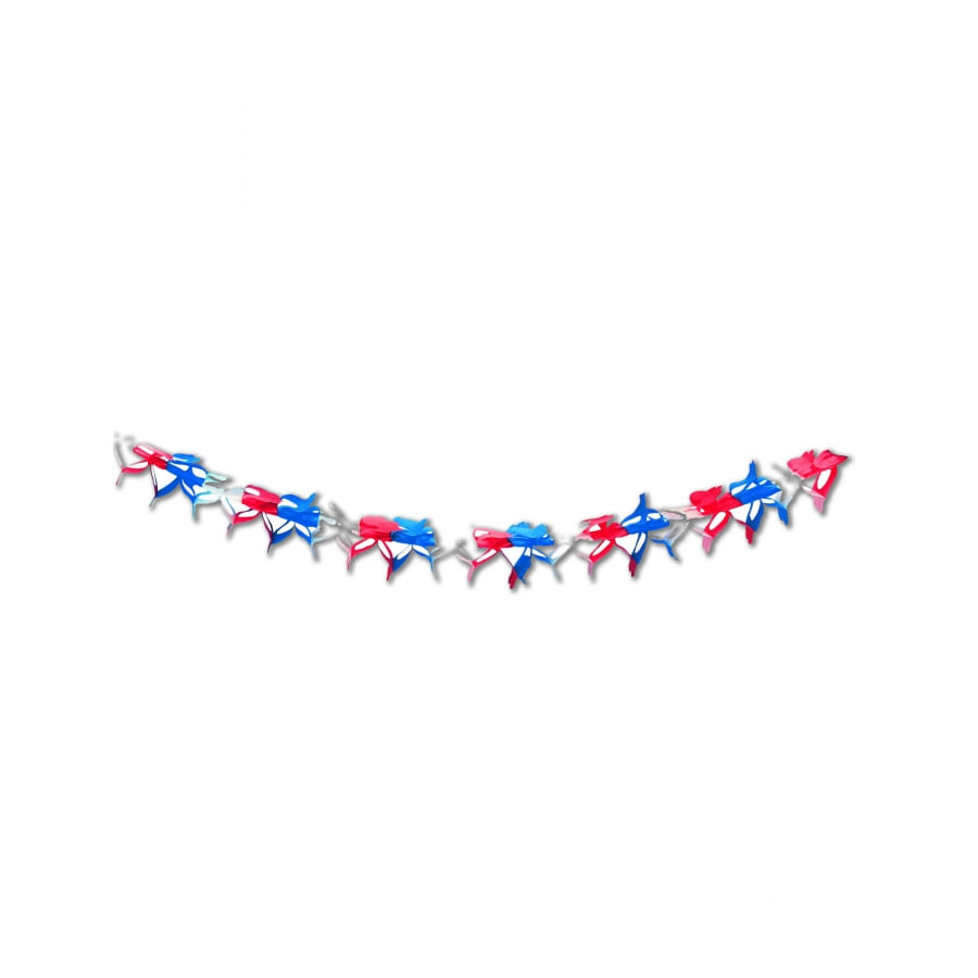Guirlande zennia tricolore de fabrication française. Cette guirlande mesure 4, 5 mètres de longueur, ce qui fait d'elle un accessoire parfait pour une décoration de grande surface. Elle est idéale pour des occasions telles que la Pâques, un mariage, un anniversaire, la Noël ou le Nouvel An.