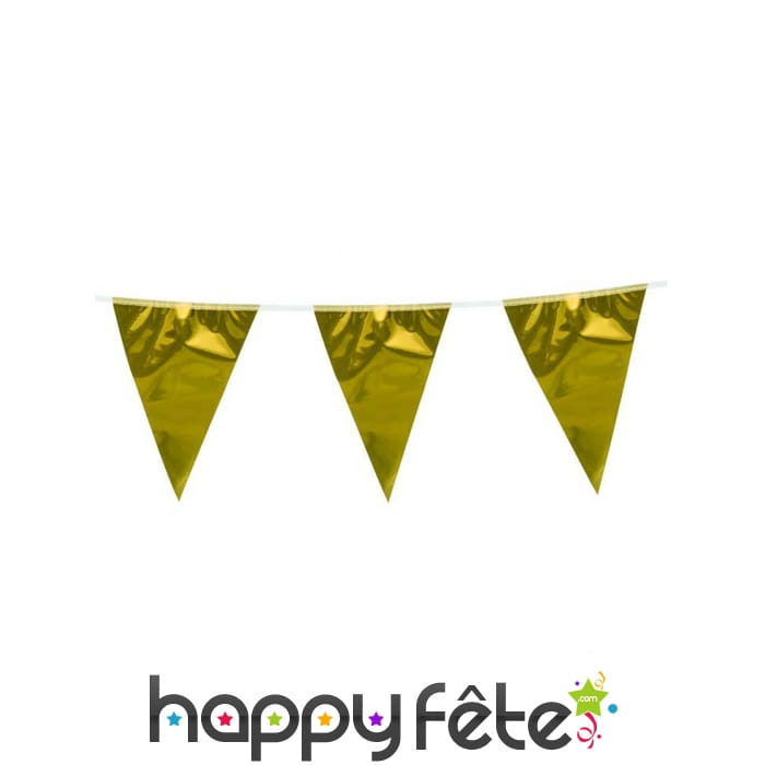 Cette guirlande de 10 m se pare de fanions triangulaires dorés.