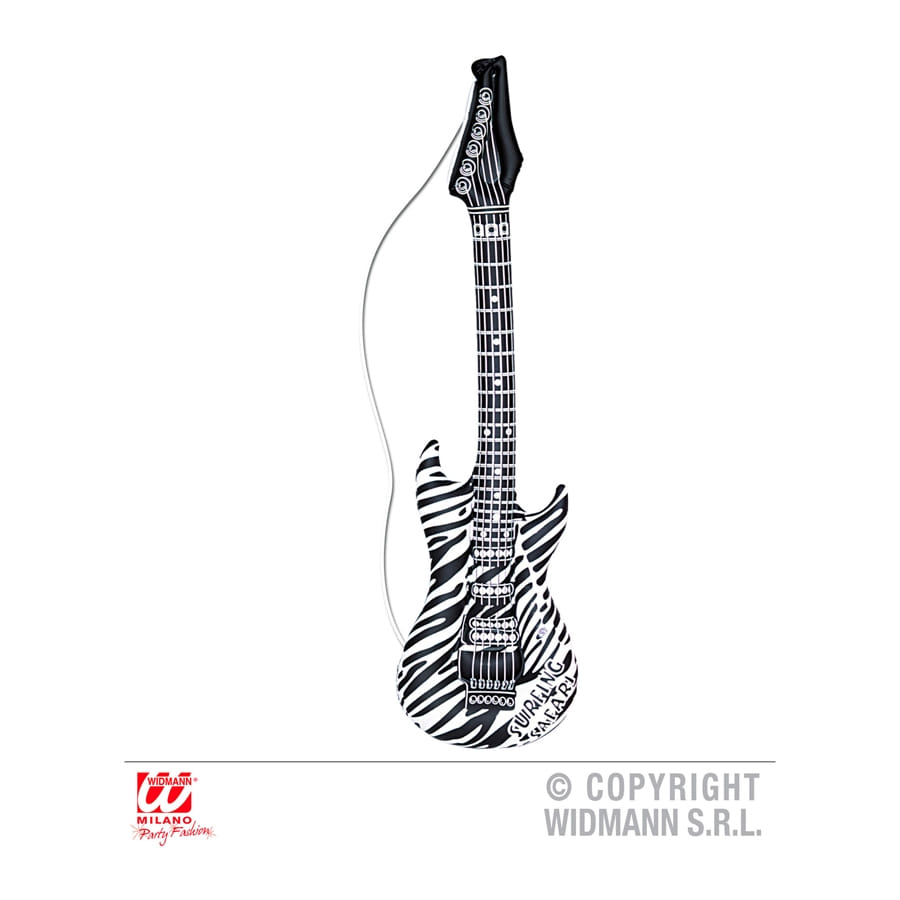 Guitare rock gonflable de couleur noir et jaune/marron aux motifs jungle rock'n roll. Cet instrument gonflable fait 107 centimètres de long. Elle est idéale pour la fête de la musique ou pour accompagner un déguisement de pure rocker.