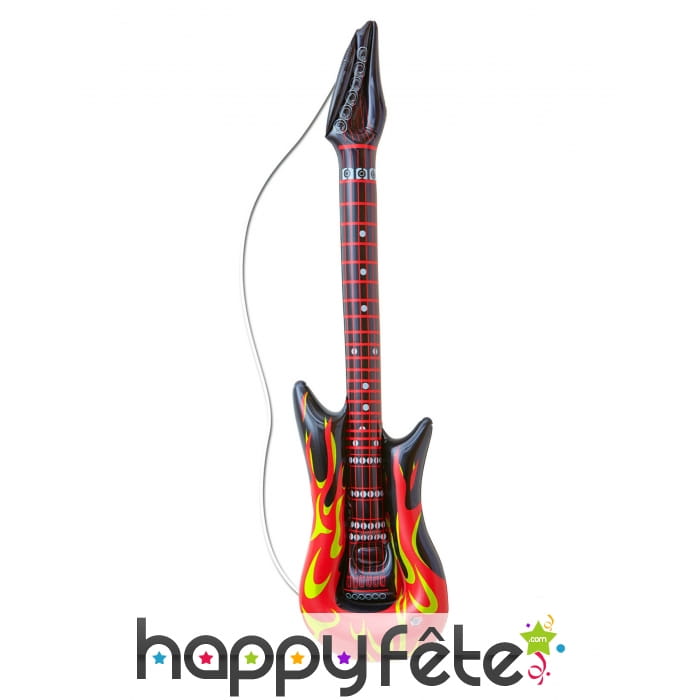 Coloriée en noir et rouge, cette guitare gonflable décorée de flammes de 105 cm de long est l'accessoire parfait pour compléter votre look de rockeur au cours de votre soirée déguisée ou du carnaval.