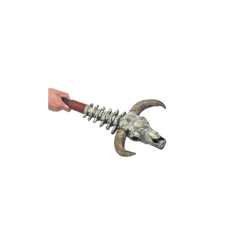 Hache minotaure, pour homme. Cet accessoire est composé d'un manche brun au bout duquel se trouve une tête de minotaure argentée. Vous pourrez l'associer à une multitude de déguisement reliés au Moyen Age.