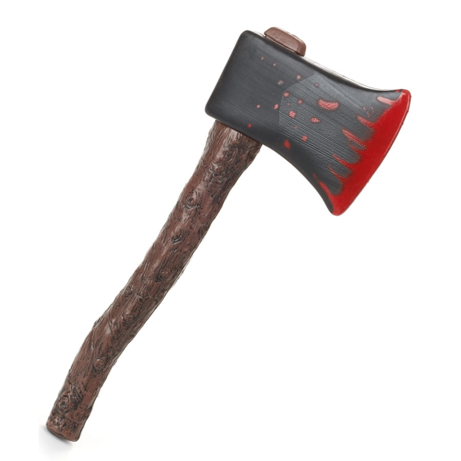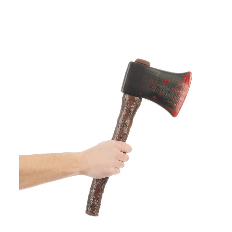 Hache ensanglantée. Cet accessoire mesure 38 centimètres de long. Elle est principalement noire et le sang de couleur rouge. Utilisez-la pour compléter un déguisement de bourreau ou de tueur à l'occasion d'une soirée d'Halloween.