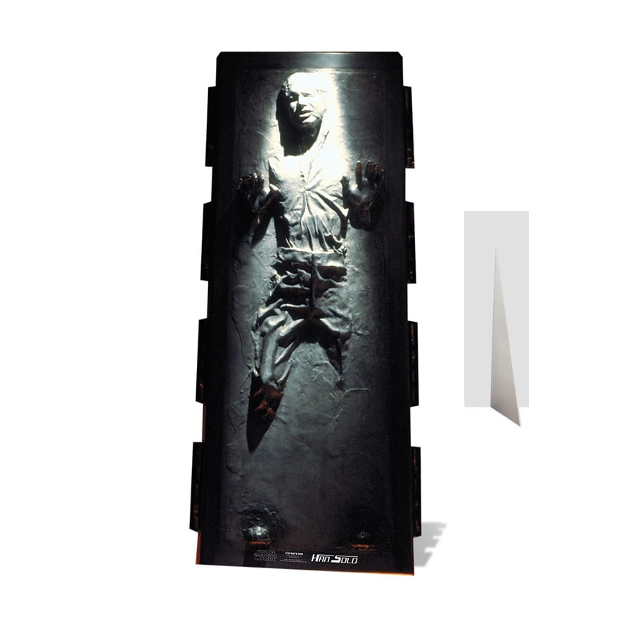 Chers fans de Star Wars, nous avons pensé à vous. Nous avons ici le produit Han Solo carbonite taille réelle en carton plat, une figurine grandeur nature représentant Han Solo dans son bloc de carbonite. Décorez votre chambre de manière originale grâce à cette figurine en carton d'une dimension de 185 x 78 cm.