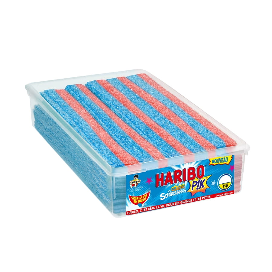 Boite schtroumpfs pik de 150 représente un paquet de délicieux bonbons en forme de bâtonnets au goût de Schtroumpfs qui piquent. Ces bonbons sont de couleur bleu et rouge. Le produit est vendu par boite remplie de 150 bonbons. Parfait pour une kermesse ou autres événements festifs.