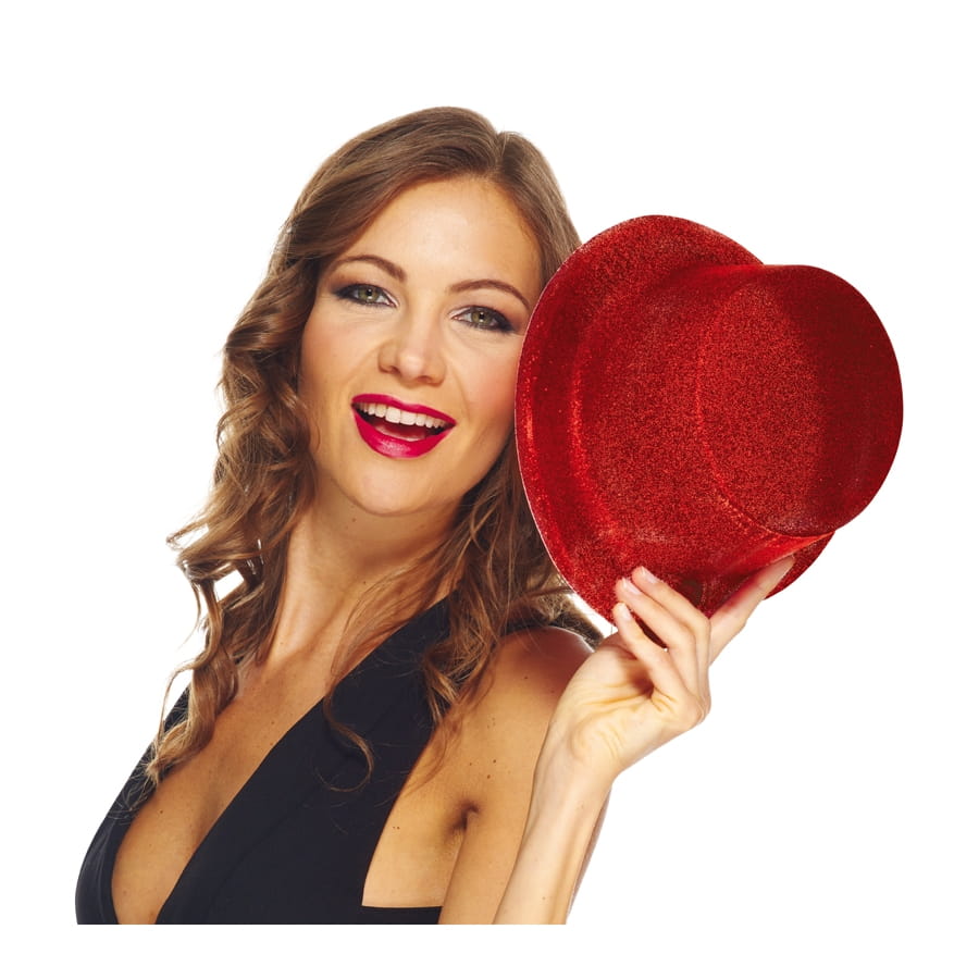 Revivez les années disco avec ce haut de forme recouvert de paillettes rouges. Grâce à cet accessoire, vous vous transformerez en personnage de cabaret parfait. Chapeau en plastique.