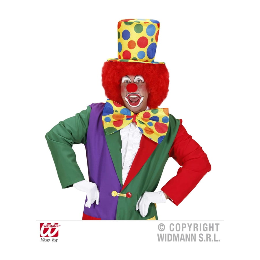 Quelle ambiance ! Le rire est un remède à tout, c'est pourquoi se déguiser en clown est tout à fait conseillé pour faire la fête. Ce haut de forme de clown, multicolore fait partie des accessoires parfaits pour incarner ce rôle. Il s'agit d'un chapeau haut de forme de couleur jaune, décoré de cercles multicolores.