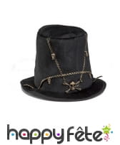 Le haut de forme décoré d'une chaîne squelette pour adulte conviendra aussi bien aux femmes qu'aux hommes.