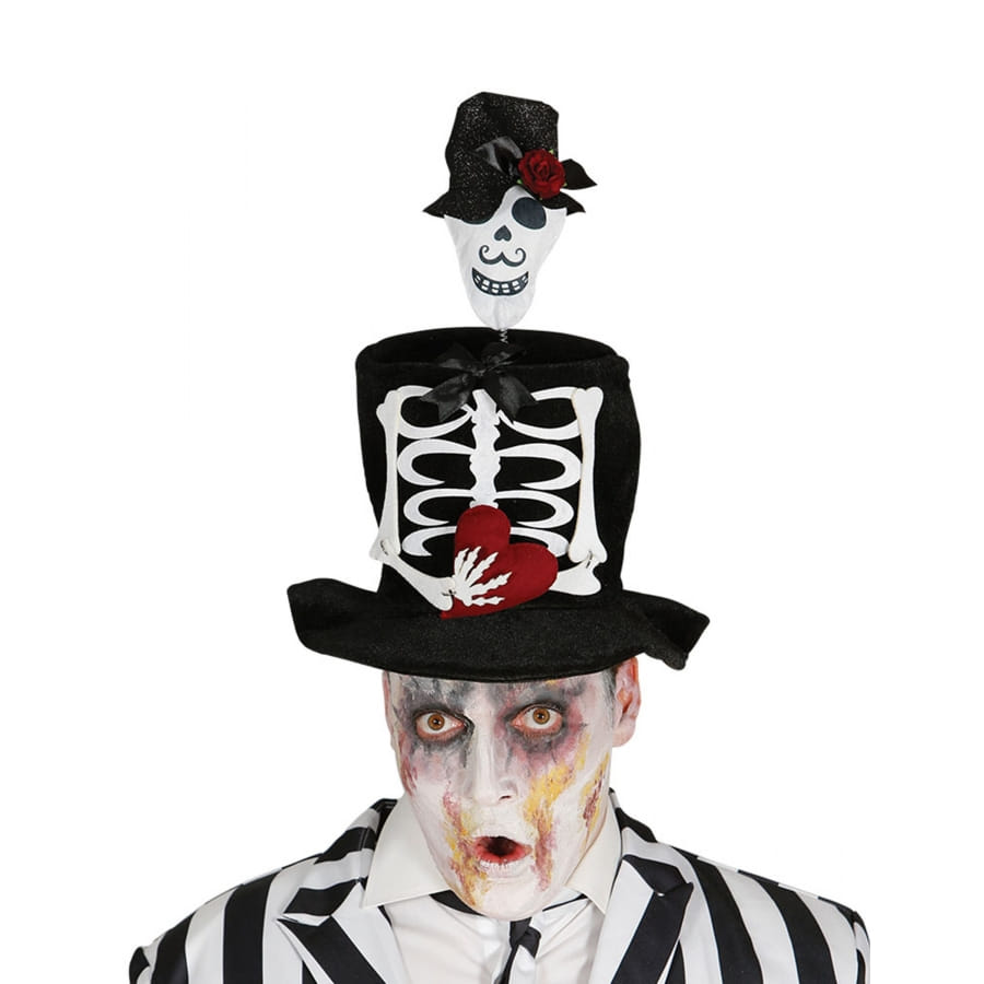La touche en plus de votre costume d'Halloween cette année sera certainement ce chapeau haut de forme Dia de los muertos marié squelette pour adulte.