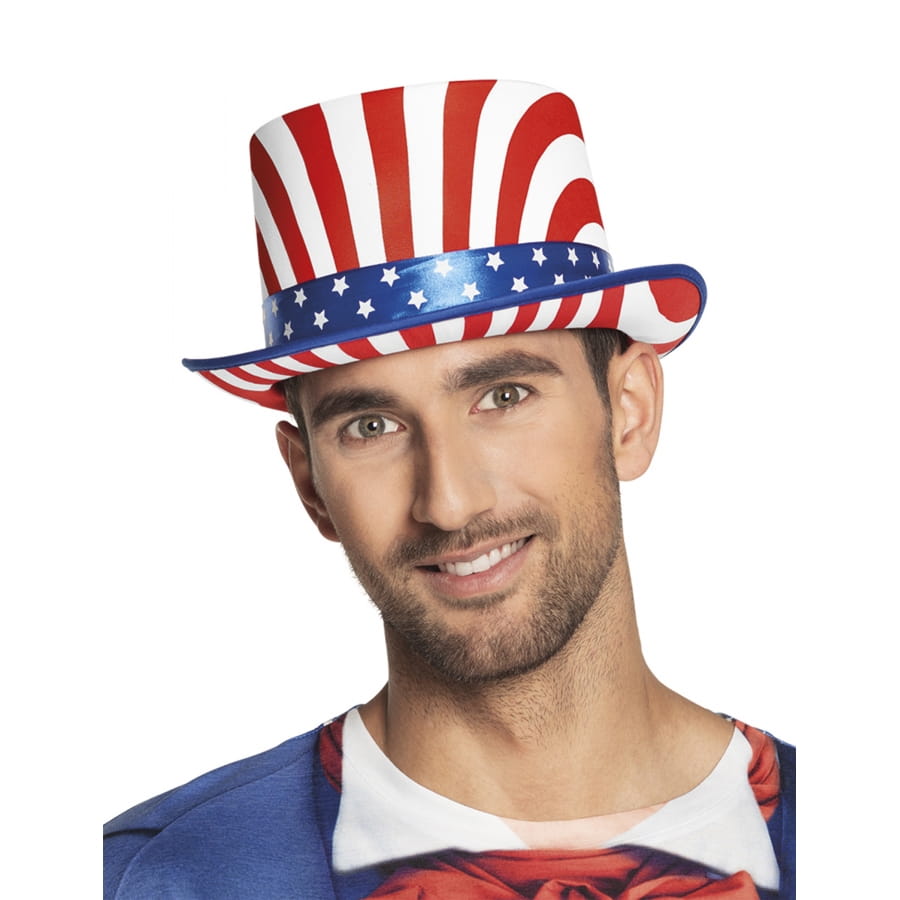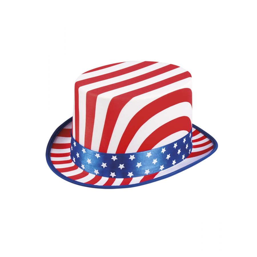 Le haut de forme drapeau USA pour adulte est fait à partir d'un tissu semi-rigide en polyester.