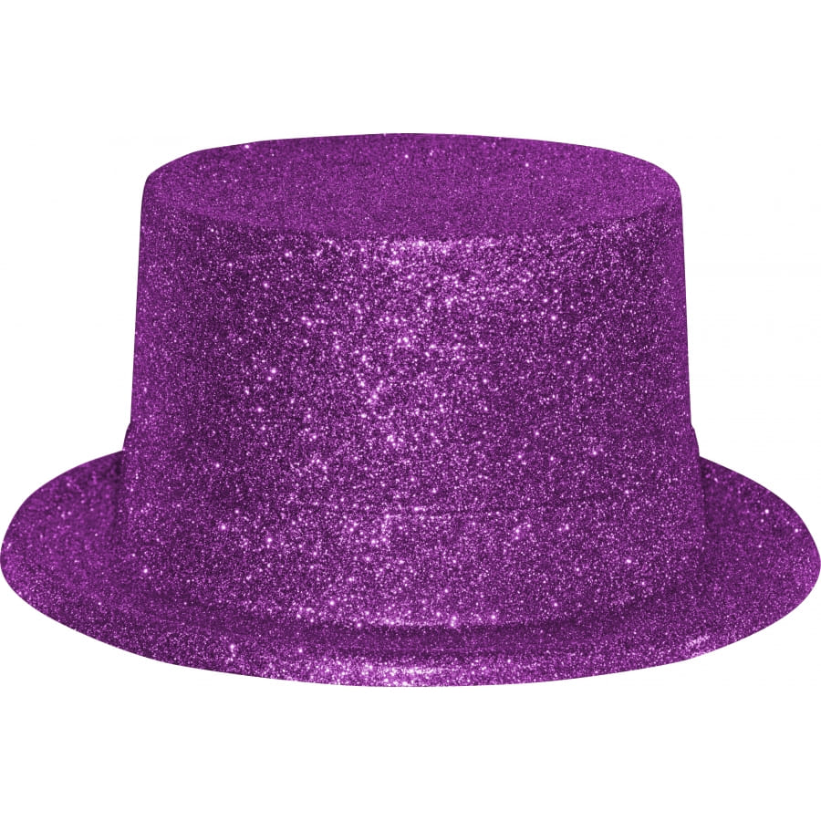 Haut-de-forme en plastique, pour homme, femme, adolescent ou adolescente, recouvert de paillettes de couleur fuchsia. Cet accessoire est parfait pour une soirée disco où vous brillerez de mille feux!