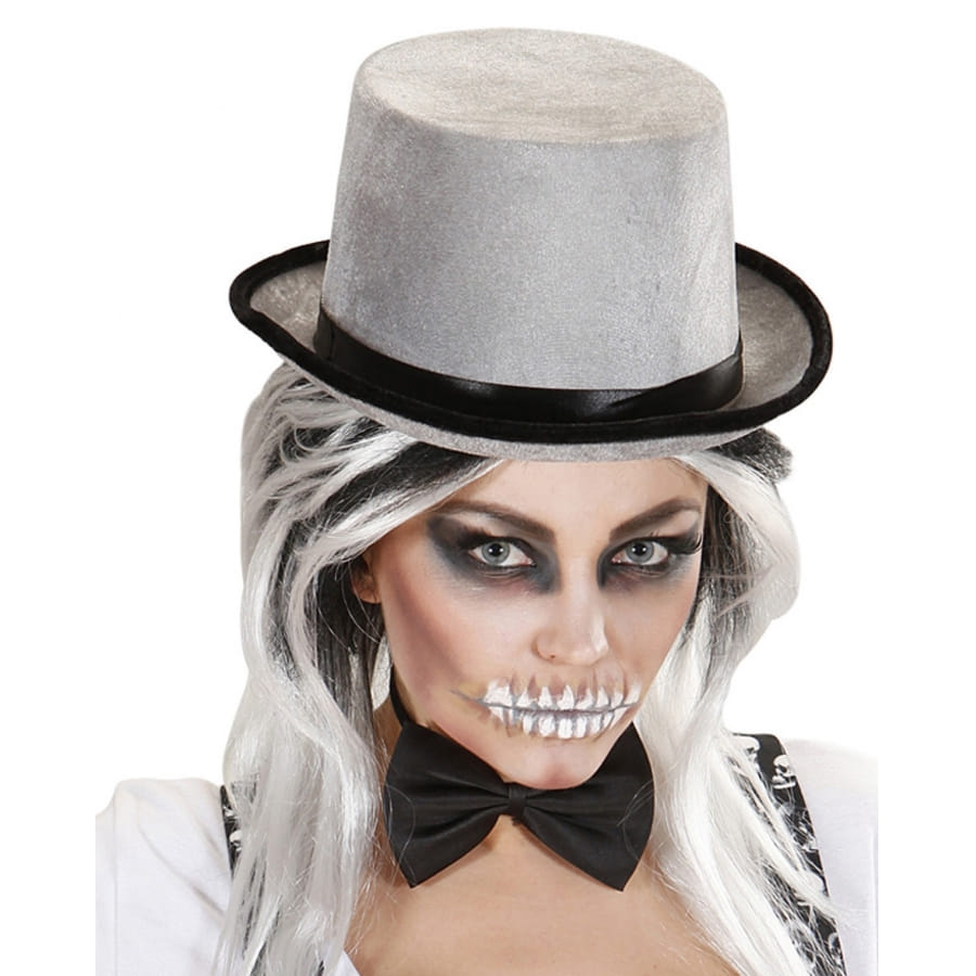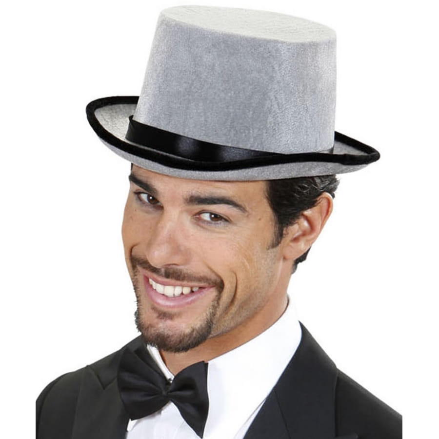 Pour agrémenter votre costume de magicien ou votre déguisement vintage pendant un carnaval ou une soirée déguisée, vous pourrez mettre ce haut de forme gris ruban noir satiné pour adulte.