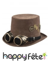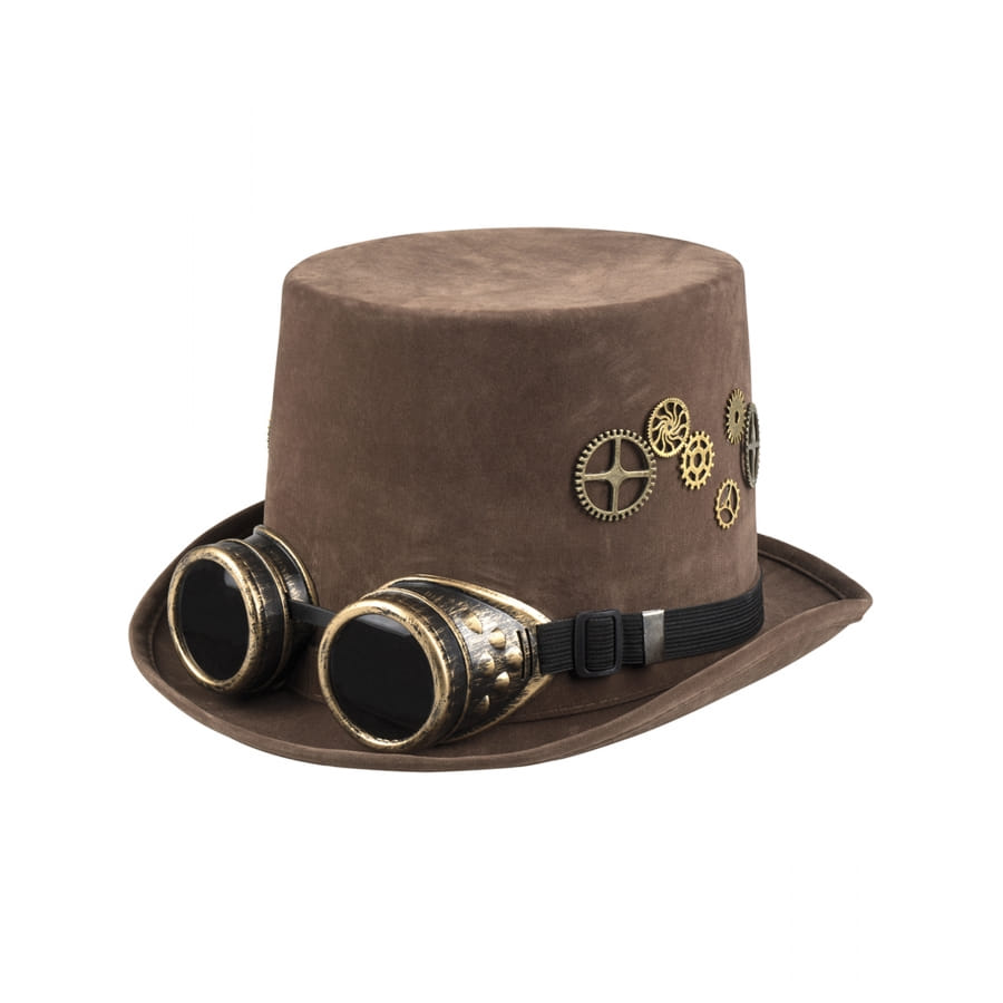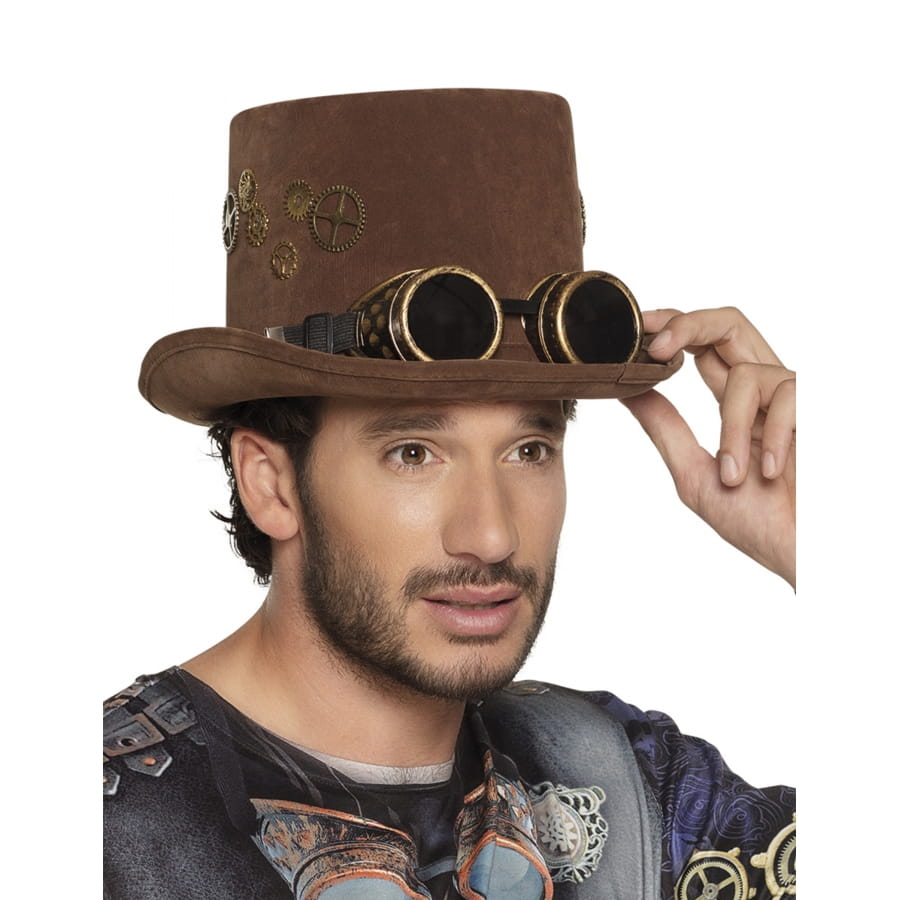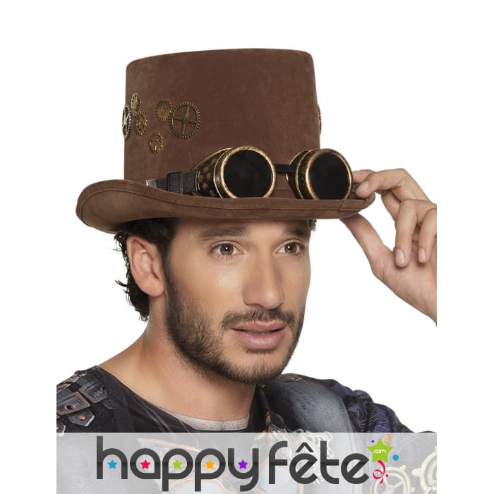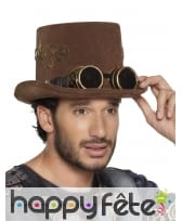 Marquez le coup lors d'une soirée déguisée et mêlez rétro et futuriste avec le haut de forme marron Steampunk avec lunettes rétro.